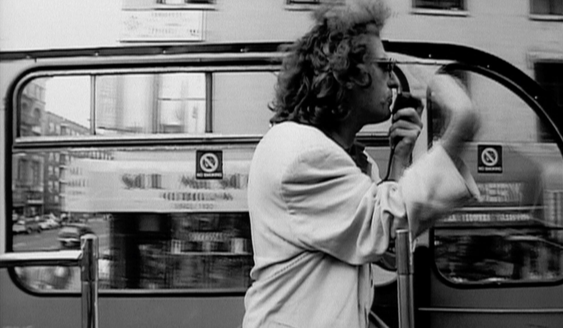 À bord d’un bus à impériale, il déclame des monologues fiévreux mêlant poésie, réflexions philosophiques et humour acerbe.